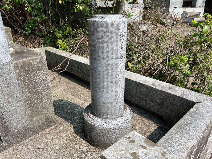 お墓に入って右側に法名塔があります。昔ながらのお墓では、法名塔はこの円柱状のものが多くありました。