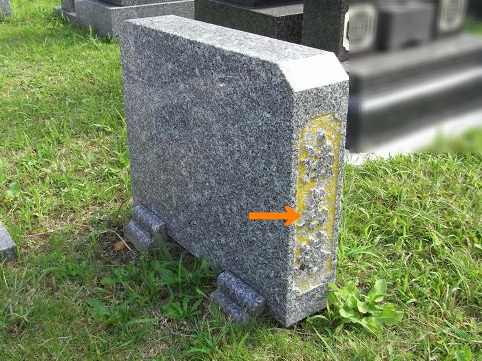 20年以上、風雨に耐えてきたお墓です。墓石背面の文字も、赤と黒で施されていた文字が、ほとんど見えないような状態でした。