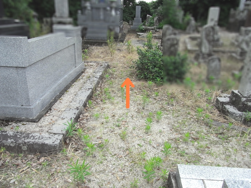 印のあるのがお客様のお墓です。手前には大きなお墓もあり、直前の通路も狭いです。今回は、大きな機械をお墓の近くに入れて作業するのは難しそうです^^;
