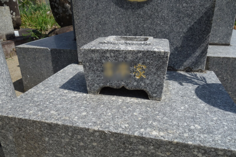 お線香立は前面にご家名が彫られていましたが、こうした細かい文字部分も金色が取れてしまっています。